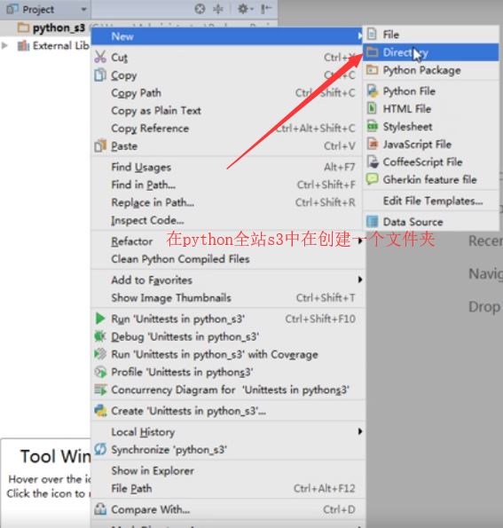 然后再右击建立python全站-s3中另外一个文件夹