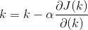 目的是求使损失函数最小的变量k(注意和变量x区分),则将损失函数对k求导(多变量时为求偏导得梯度,这里单变量求导,其实不算梯度),求偏导如下:
