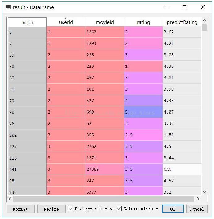 test.loc[index,'predictRating'] = np.dot(userFeature,movieFeature) #不定位到不能修改值