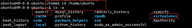 第三步:进入家目录找到.bashrc文件 以及可以看到第二步创建的.virtualenvs文件夹