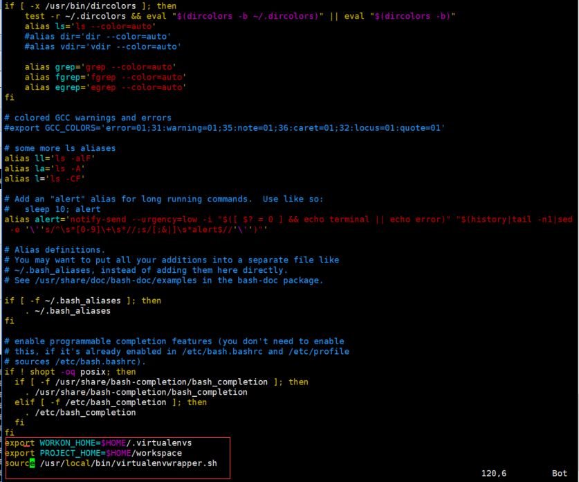 第四步:使用vim编辑.bashrc文件在文件末尾加入如下内容