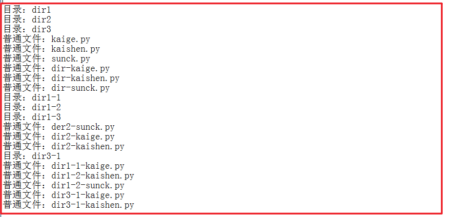 # 判断:如果是目录dir入队操作,如果不是dir打印出即可