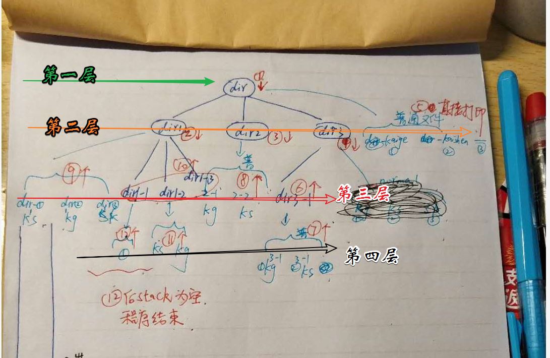 #判断:是目录压栈,把该目录地址压栈,不是目录即是普通文件,打印
