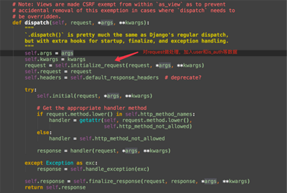 最后,不管有没有使用permission_classes来决定是否能访问,默认的或是你自己指定的authentication_classes都会执行并将权限结果放在request中!