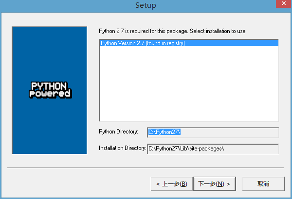 在Python官方网站中下载Python2.7.6的Windows安装包,根据默认配置安装到C:\Python27目录。