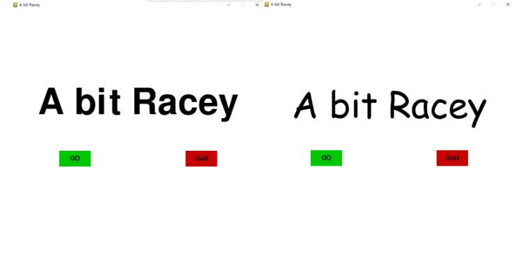 TextSurf, TextRect = text_objects('A bit Racey', largeText)