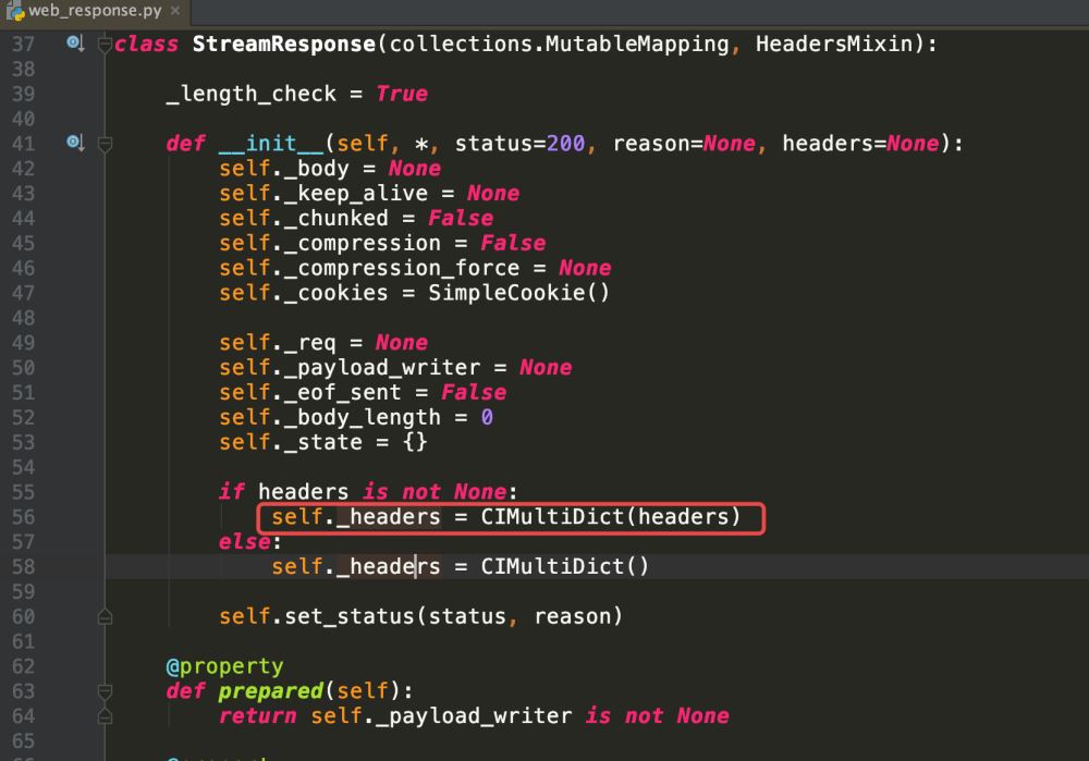 我们找到最终行,这个时候我们大致就可以看出哪里的问题了,我们接着看 CIMultiDict