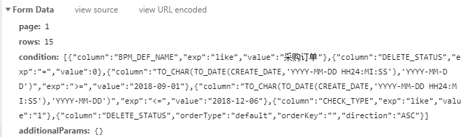 类似于字典格式,其中condition键对应的value较为复杂——列表中包含字典,字典中还有部分函数,其中字符串中既有单引号又有双引号交错。属于关键信息,page决定了网页的翻页在第几页,而rows则表示每次请求的数据限定的最大行数。