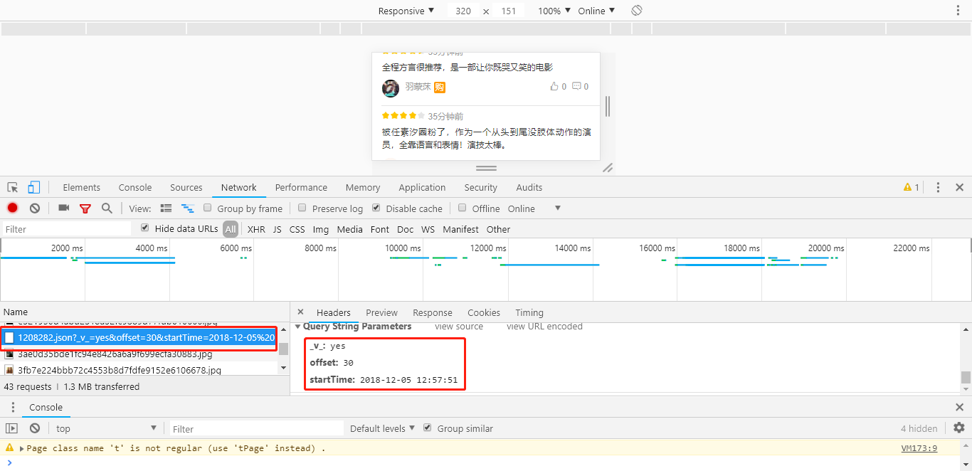 链接地址:http://m.maoyan.com/mmdb/comments/movie/1208282.json?v=yes&offset=15&startTime=