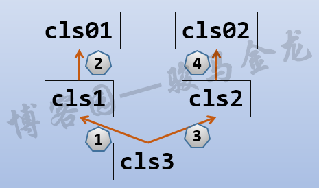 上面cls3继承了cls1和cls2,它的名称空间将连接到两个父类名称空间,也就是说只要cls1或cls2拥有的属性,cls3构造的对象就拥有(注意,cls3类是不拥有的,只有cls3类的对象才拥有)。