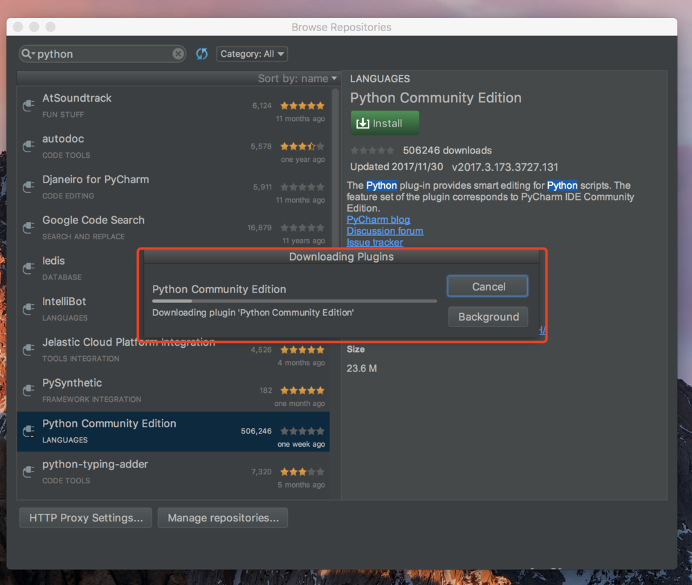 4、然后点击search in repositories(在仓库里搜索),我们就可以搜索到很多关于python的插件