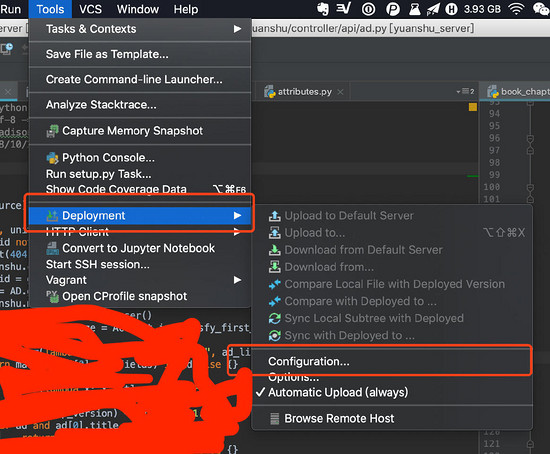 打开pycharm,tools-->Deployment-->Configuration