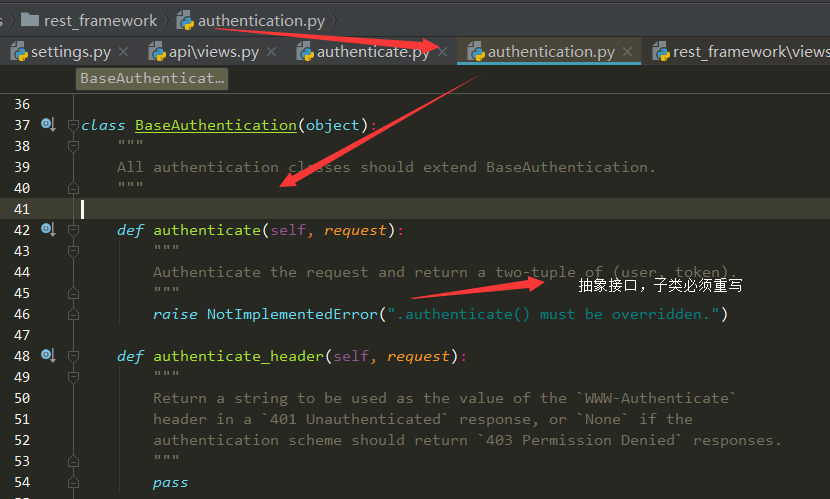 # 添加自己的认证逻辑,基类BaseAuthentication中有两个必须要重写的接口