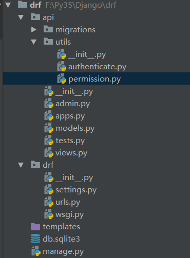 为了更好的管理各个功能组件,在django rest framework 之 认证 中我们说到可以将认证类单独的拿出来,放到其他目录下,然后导入到 views.py 文件中,在权限环节我们亦可以这么做,目录结构就变成这样