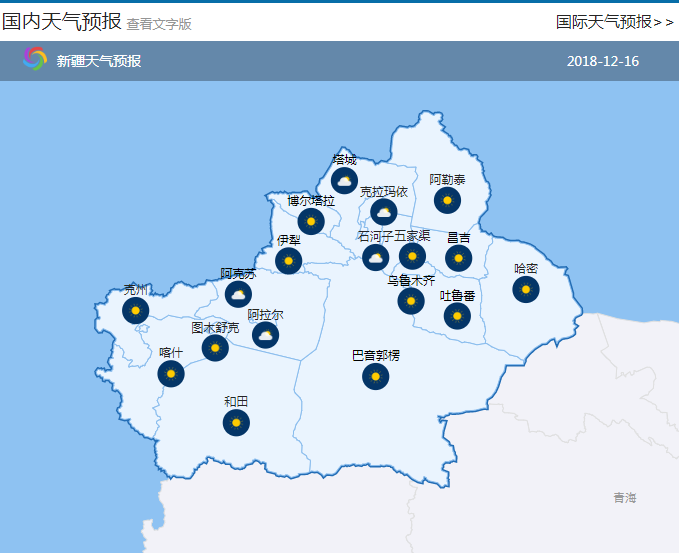 而当我们用鼠标左键点击的时候,就能够查看这个省的整体天气情况: