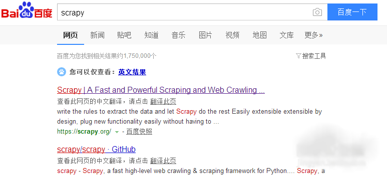 网络上现有的windows下搭建scrapy教程都比较旧,一般都是咔咔咔安装一堆软件,太麻烦,这是因为scrapy框架用到好多不同的模块,其实查阅最新的官网scrapy文档,在windows下搭建scrapy框架,官方文档是建议使用集成包的,以免安装太过复杂而出现问题,首先百度scrapy,就可以找到scrapy的官方文档