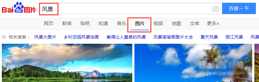 就是百度图片为例,当你如下图在百度图片里搜索一个主题时,会为你跳出一大堆相关的图片。