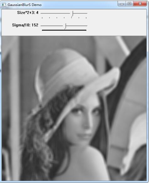 注意:由于σ=0σ=0时,opencv会根据窗口大小计算出σσ,所以,从0滑动σσ的滑动条时,会出现先边清晰又变模糊的现象