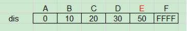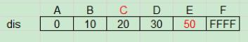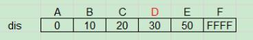 首先从起点A 开始,将A可以直接到达的顶点的权重记录在dis数组中,无法直达的记录无穷大(当前使用FFFF表示无穷大)。
