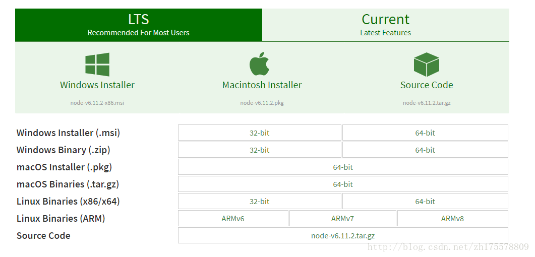 访问 https://nodejs.org/en/download/,下载node.js,根据操作系统下载对应的安装包,这里选择Windows 32位的