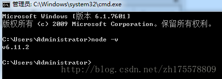 安装完成后,会自动将路径加入到环境变量中,在命令行窗口中运行node -v,如果出现版本号,表示安装正常,如下图所示