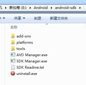 下载地址:https://developer.android.com/,考虑到有可能会打不开这个链接,提供一个中文社区的SDK下载链接:http://tools.android-studio.org/index.php/sdk。这里选择installer_r24.4.1-windows.exe进行下载,下载完成安装后目录结构是这样的