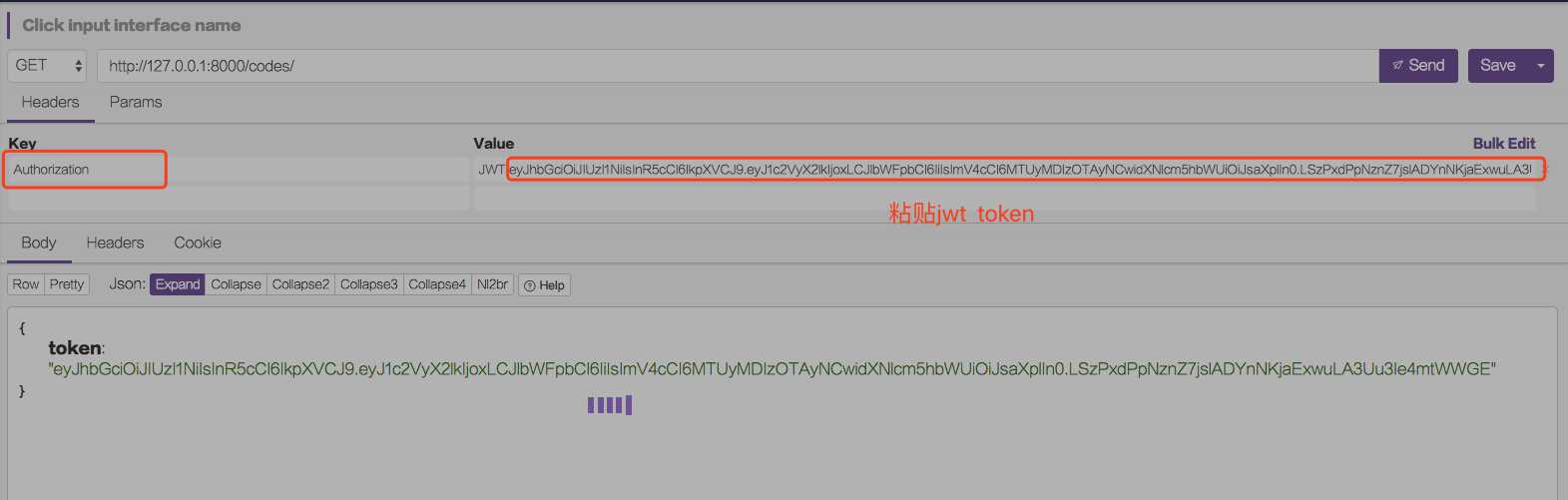 粘贴jwt token 到header中法功请求获取codes列表数据