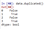 pandas判断dataframe是否含有重复行数据用:df.duplicated()