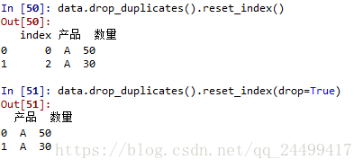 可以看到索引乱了,我们使用data.reset_index(),里面的参数drop=True,表明要舍掉原来的索引,不然的话原来的索引会保留下来。