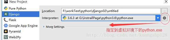 6、pycharm使用虚拟环境下的python开发项目(以django讲解)[在Scripts目录下]