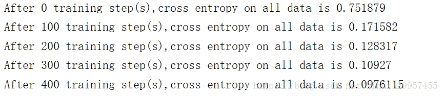 print("After %d training step(s),cross entropy on all data is %g"%(i,total_cross_entropy))