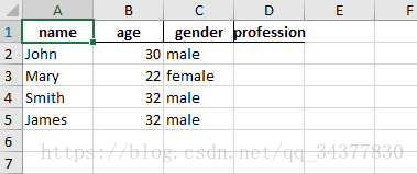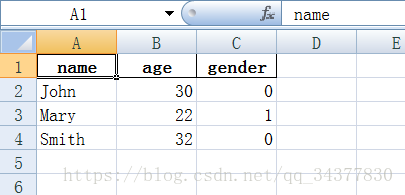 首先可以先创建一个excel文件当作实验数据,名称为example.xlsx,内容如下: