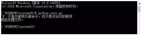 在 cmd 窗口输入 $ python test.py,得到运行错误的提示: