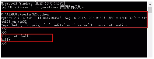 交互式编程,需要我们打开 cmd 窗口(命令提示符窗口),在窗口中键入python,回车,这样就进入了交互式编程。此时我们直接输入 python 语句,就可以得到运行的结果: