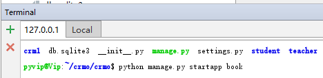 项目运行成功后,在terminal里面找到本项目,输入命令 Python manage.py startapp appname