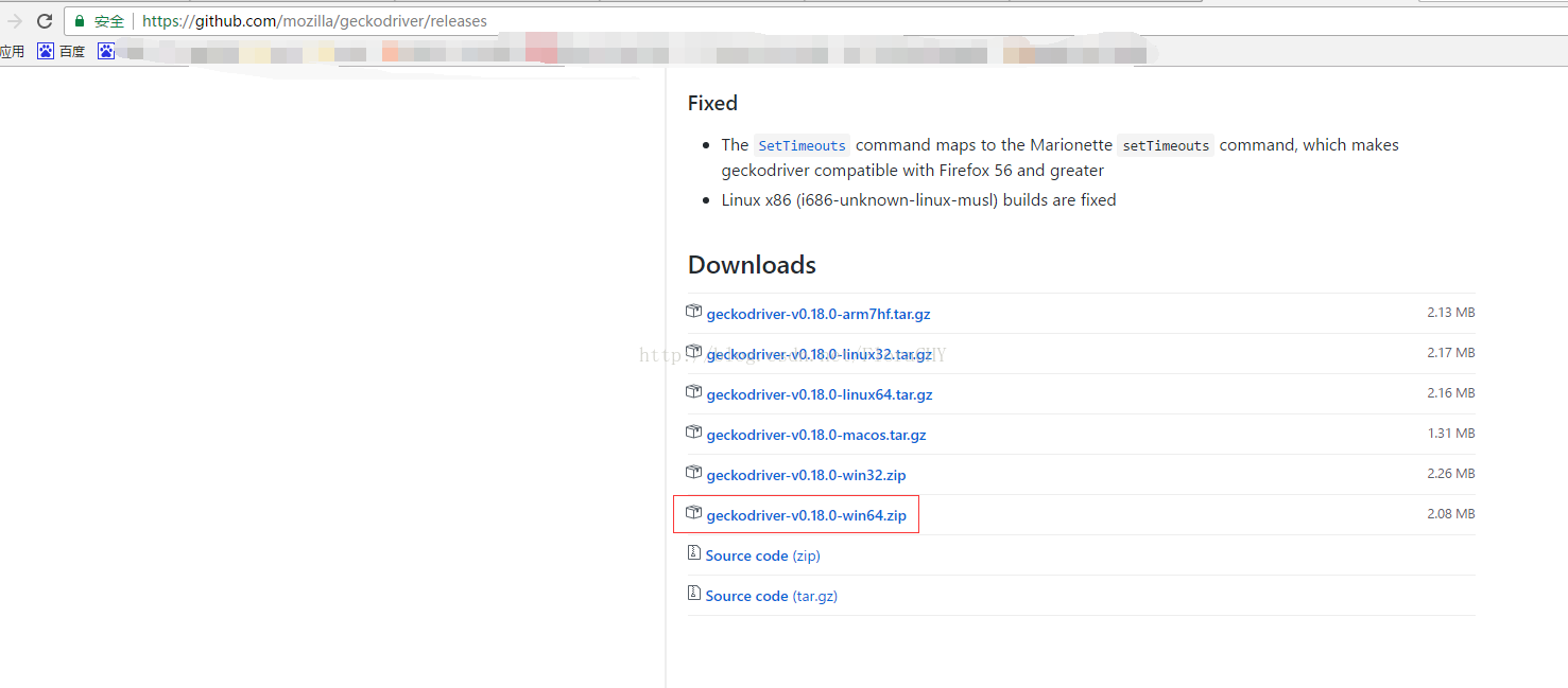 下载地址:https://github.com/mozilla/geckodriver/releases