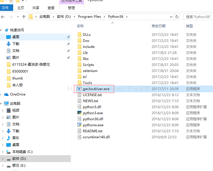注意: 这里之所以将geckodriver.exe与Python3.exe放置在相同路径下,是因为python3.exe在系统的环境变量中的Path中有配置:【D:\Program Files\Python36\】。如果不放置到相同路径,需要自己在Path中配置环境变量,路径为geckodriver所在路径。
