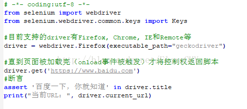 selenium进行自动化测试的方法是打开浏览器,按照脚本规定的操作模拟人的行为,然后检查期望值与实际值是否相符,以判定测试是否通过。所以第一步就是:访问页面。