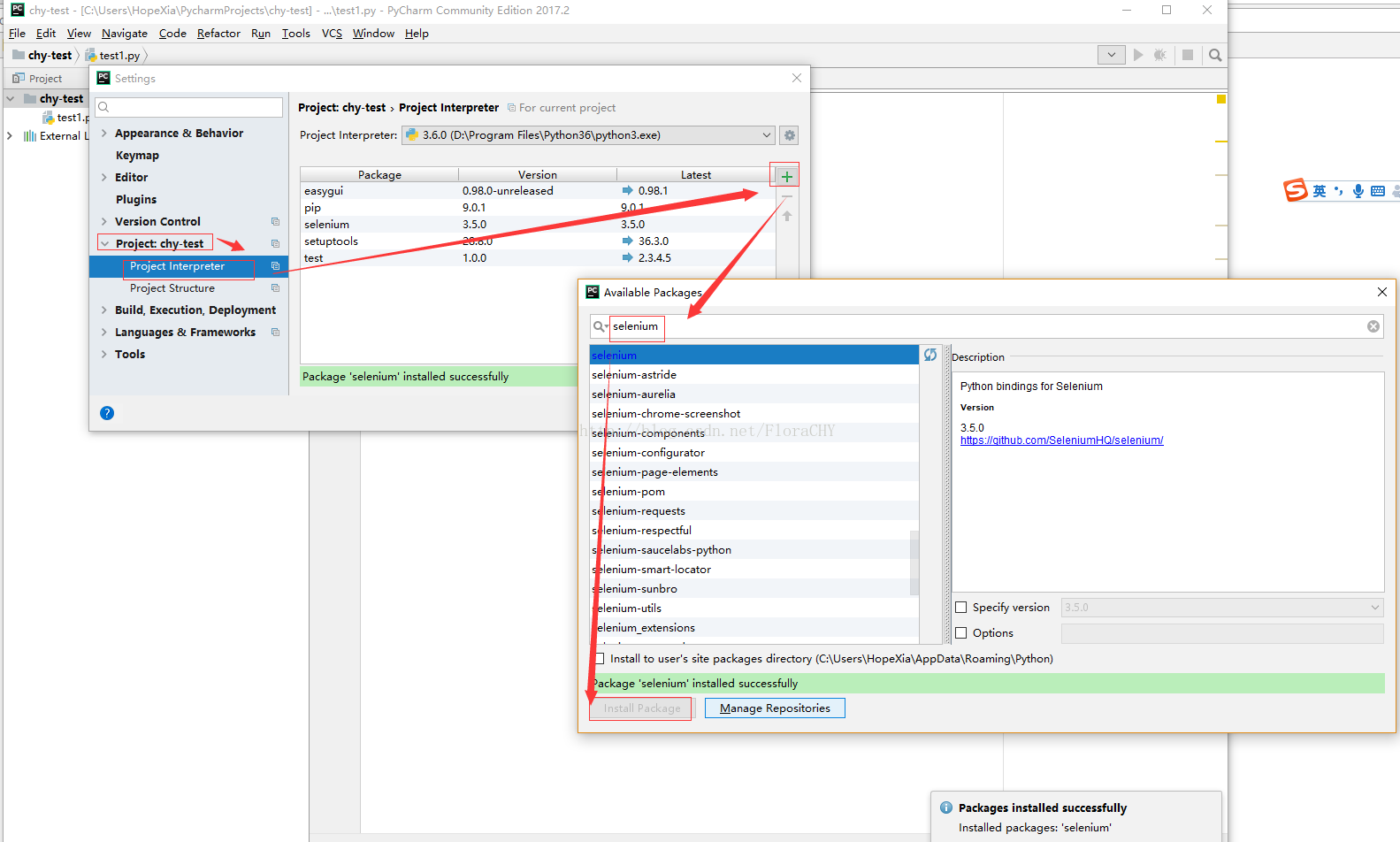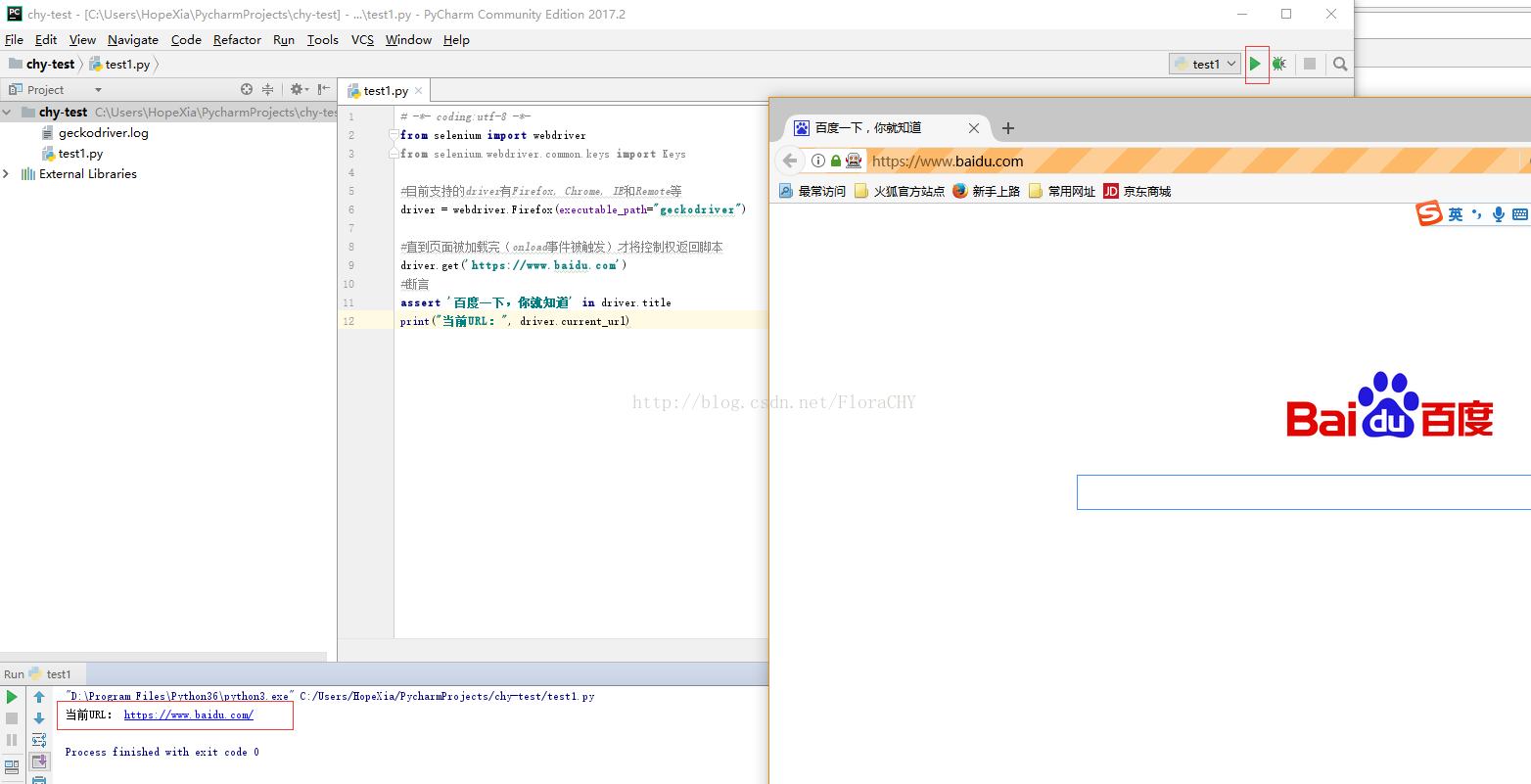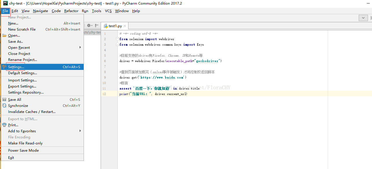 这里使用PyCharm来运行以上脚本。需要在PyCharm里面配置Selenium。