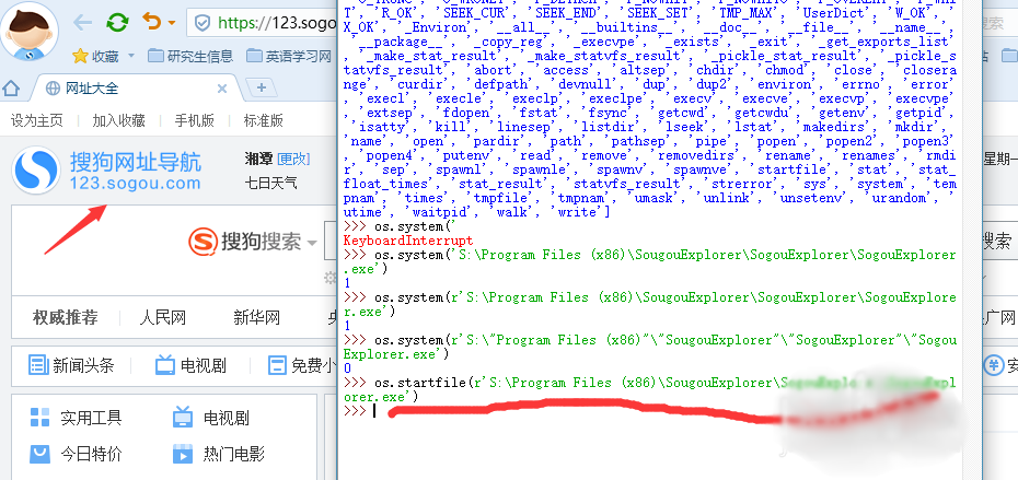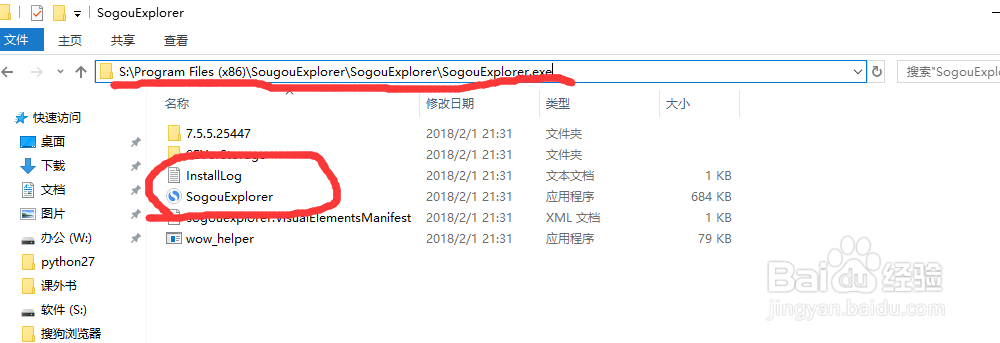 假设我们调用电脑上的浏览器(我使用的是搜狗浏览器),那么我们先找找浏览器安装的路径位置,如图所示: