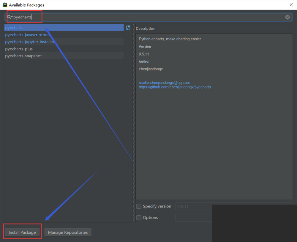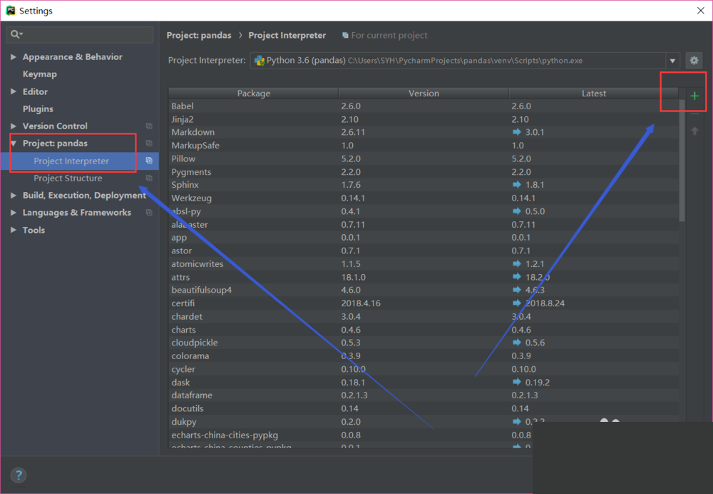 安装所需包——pyecharts。两种安装方式:1、pip install pyecharts;2、从JetBrains PyCharm中 File——>Settings...——>Project——>Project Interpreter 点击右上角的绿色“+”,在搜索框中输入“pyecharts”,点击安装即可(个人习惯用第二种)。