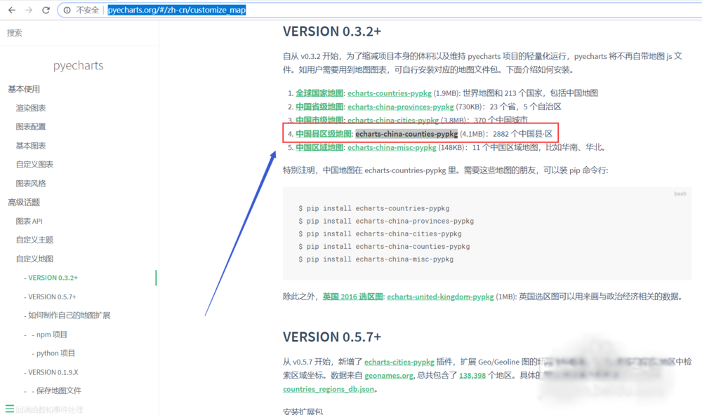 进入pyecharts官网,下载并安装所需地图软件——echarts-china-counties-pypkg