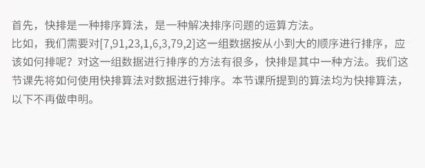 2、快排是一种解决排序问题的运算方法。