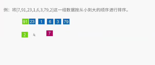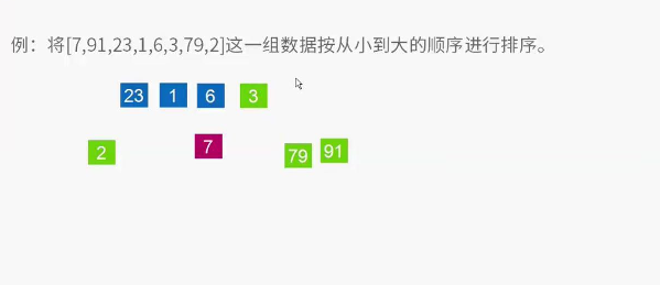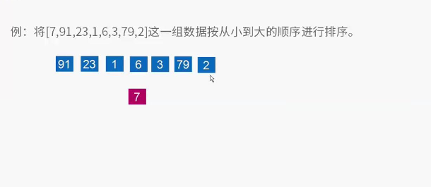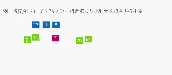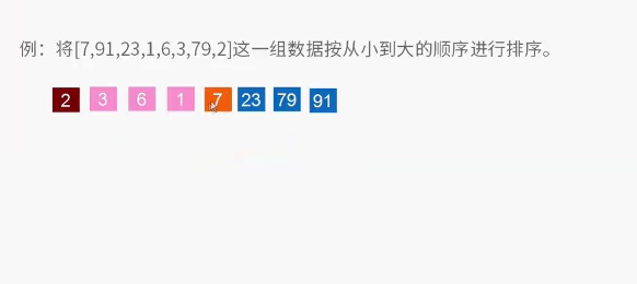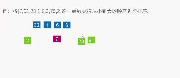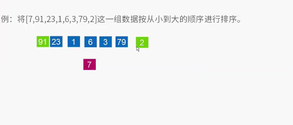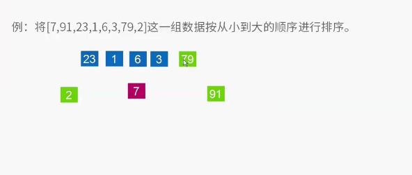 4、下面以[ 7 91 23 1 6 3 79 2 ]数组为例子,进行快排运算。