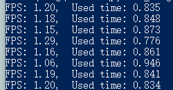 print( "FPS: %.2f, Used time: %.3f" % (1 / elapsed, elapsed ))