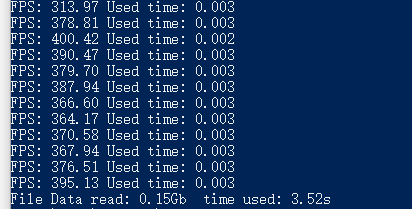 将 memmap 读取到的数据 img 直接显示在窗口中 cv.imshow( "file", img),每一帧打印出显示该帧所用的时间,最后显示总的时间和读取到的数据大小:
