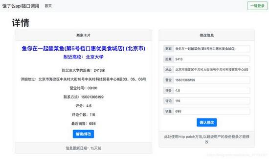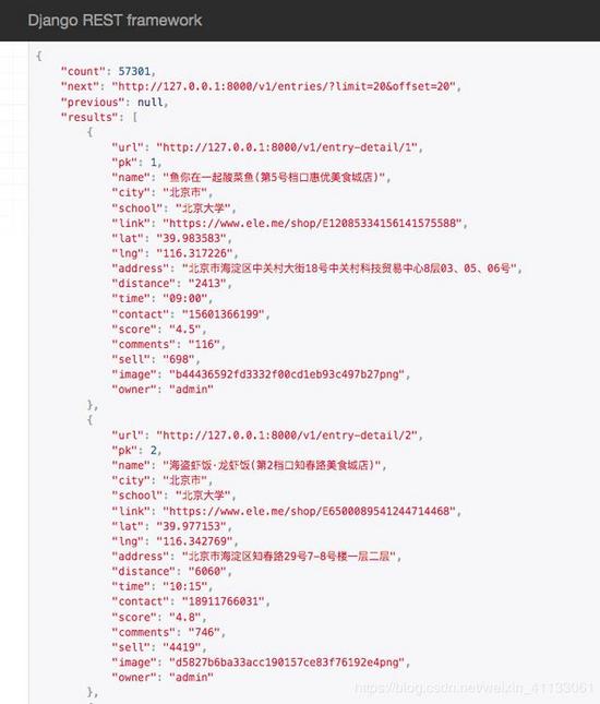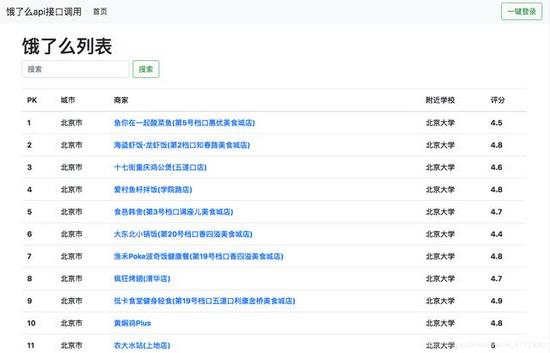 在这个例子中,我们将使用Django编写饿了么高校外卖商家查询API接口,并且使用AJAX技术来实现API接口的使用,包括使用ajax get方法加载更多数据,使用ajax方法来更新、修改、新增、删除数据。利用API可以做到前后端分离,为开发web应用提供了便利。