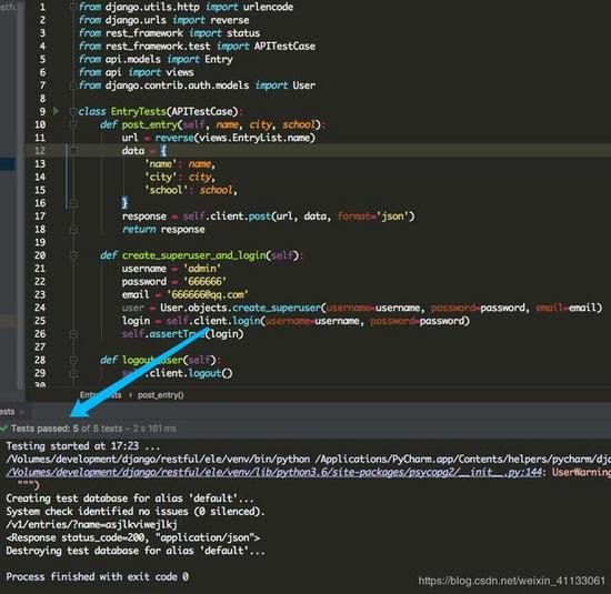到此为止非常简单的api就写完了,接下来就是自动化测试是否达到预期效果。 如图,测试通过!