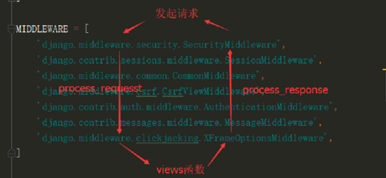 按照 settings.py 文件 中的 MIDDLEWARE 列表顺序来的;请求的时候从前往后(从第一个到最后一个);响应的时候从后往前(从最后一个到第一个)