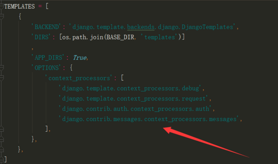 激活(注册):在 settings.py 文件里的 TEMPLATES 中的 OPTIONS 中的 'context_processors' 里面添加自定义的上下文处理器的全路径(添加到最后)
